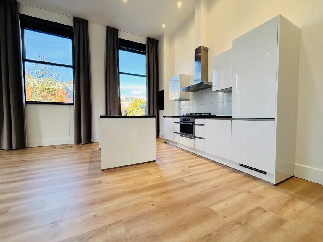 INDELING: Entree op straatniveau, u betreedt de gemeenschappelijke ruimte. U neemt de trap naar de 1e etage waar het appartement zich aan de voorzijde bevindt. Voordeur, entree appartement in de hal. Ruime woonkamer van circa. 45 m². Openkeuken met kookeiland welke is voorzien van een kookplaat, koelkast, vriezer, combi oven, afzuigkap en vaatwasser. Slaapkamer van circa. 11 m². Badkamer welke is voorzien van een douche, ligbad en wastafel. Het toilet is separaat.