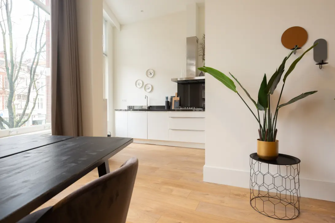 Very luxurious apartment with high-quality finishes located in the vibrant center of The Hague. The living space exudes atmosphere, comfort, and luxury and is available for a couple or family. All the conveniences that the center of The Hague has to offer are within reach. Various stores from large retail chains to charming boutiques, several terraces and dining options, the Pathé cinema, entertainment venues, and more are all in the immediate vicinity. You will also find the well-known Lange Voorhout, the Binnenhof, the Denneweg, the Frederikstraat, Noordeinde Palace, and various international organizations nearby. The Hague Central Station is a five-minute walk away, making it easy to travel to other parts of the country.