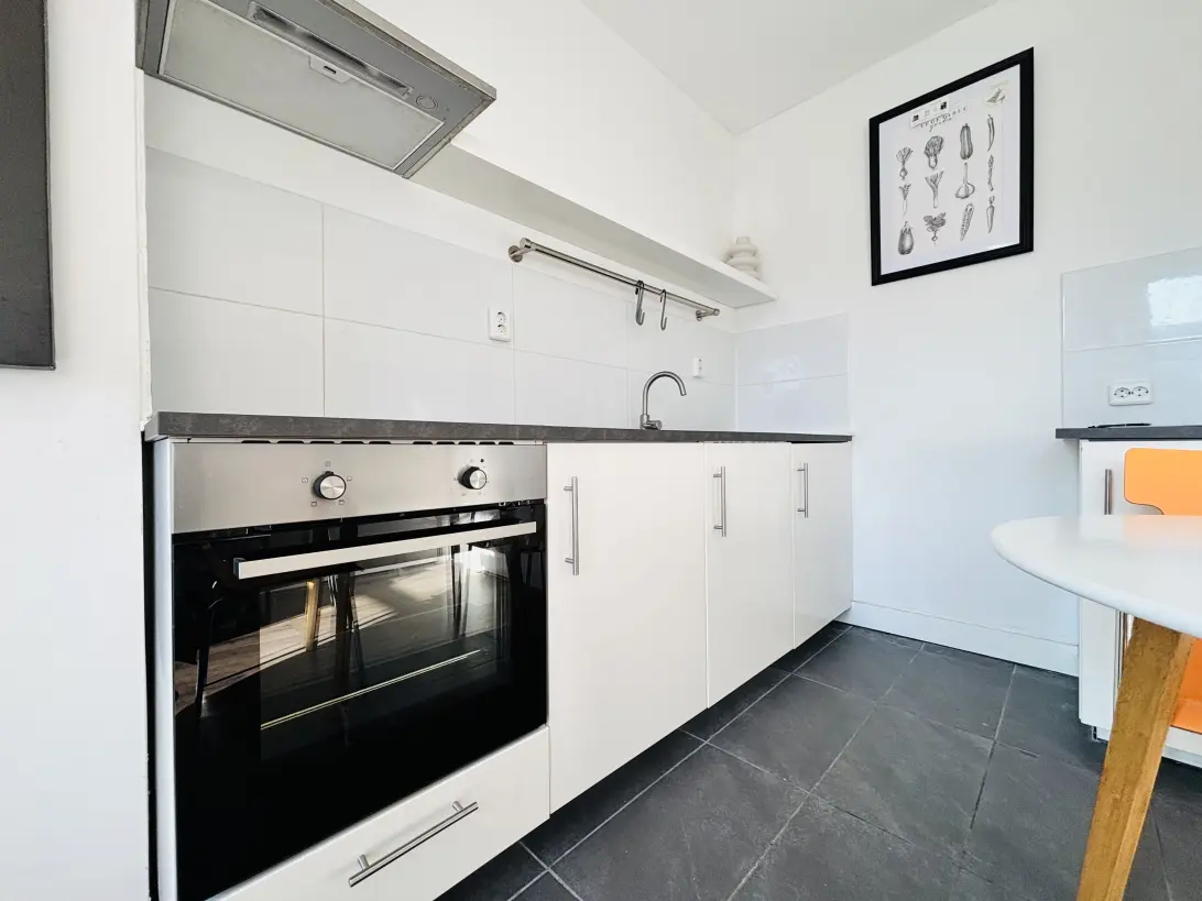 LAYOUT: Shared entrance at street level. You enter the hallway where the apartment is located directly at the front. Entrance into the studio with open kitchen, which is equipped with an induction cooktop, extractor hood, refrigerator, oven and washing machine. The bathroom is equipped with a sink and a shower.